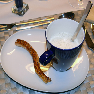 Schaumsuppe von der Schwarzwurzel mit Blätterteigstange