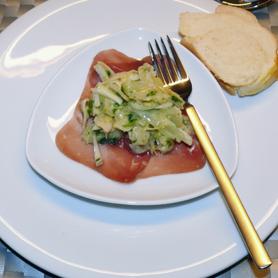 Fenchelsalat auf Bündnerfleisch-Carpaccio
